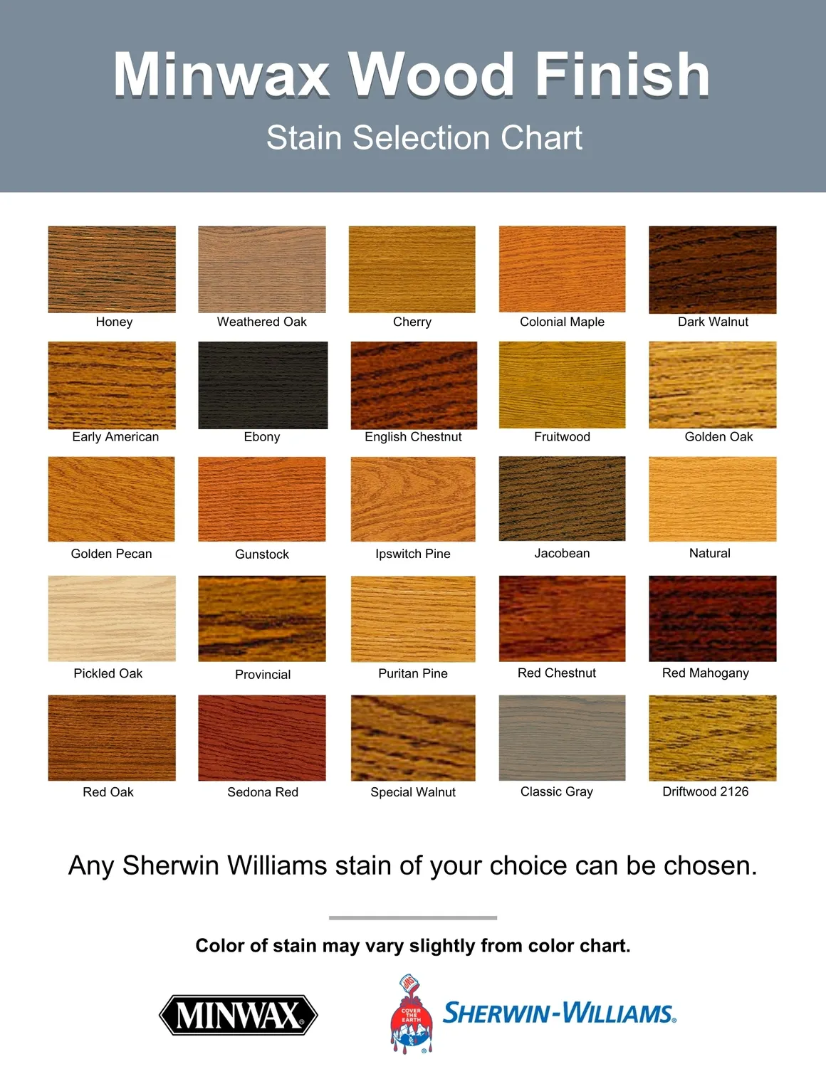 • * All stain or paint options can be chosen from the provided chart or customized with any choice from Sherwin Williams.