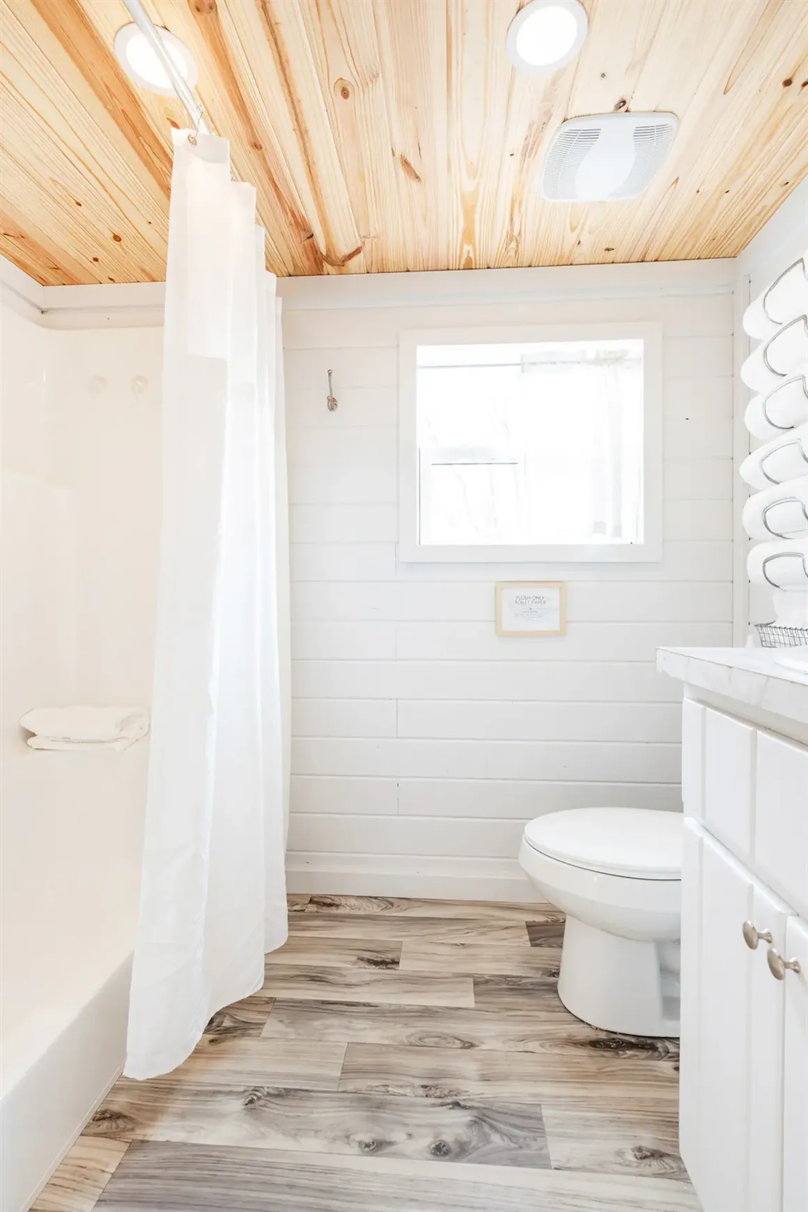 The River Stone 4B 115 stands out in our lineup for its balanced design, generous loft area, and two screened porches—one at each end of the home. With a total length of 52′-5″ and a width of 11′-8″, this model creates versatile living opportunities for families, couples, and short-term rental owners who want strong curb appeal and flexible sleeping or storage space. The full-length loft dramatically increases usable square footage, while the dual porches turn this model into a true indoor–outdoor retreat fit for mountain, lakeside, or wooded properties.